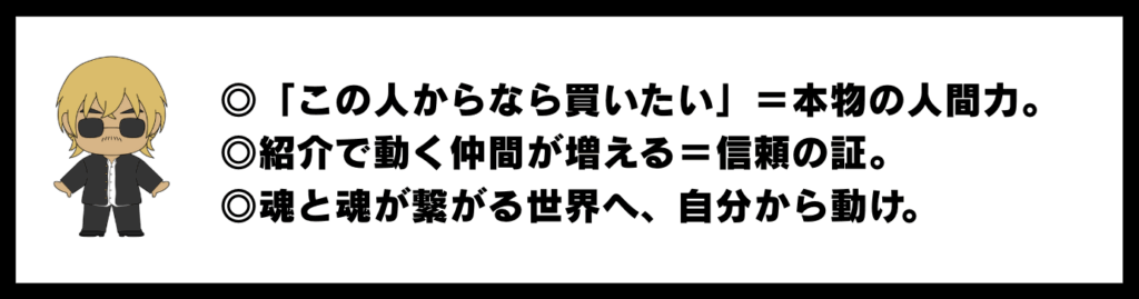 ◎セールスじゃない。“人生を繋ぐ”紹介や。