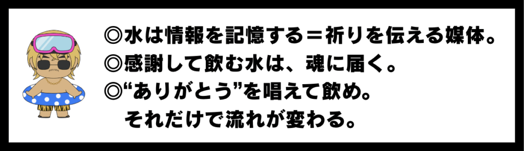 祈って、水を飲んで、言霊を吐いて、深呼吸。