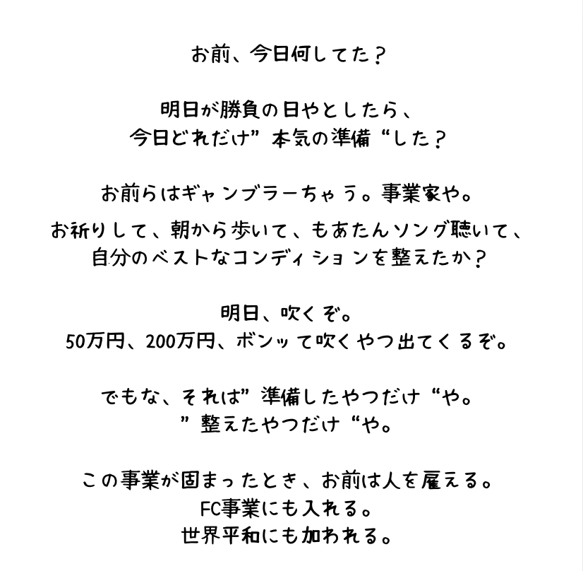 ◎今日やることを、今日やったやつが“吹く”。