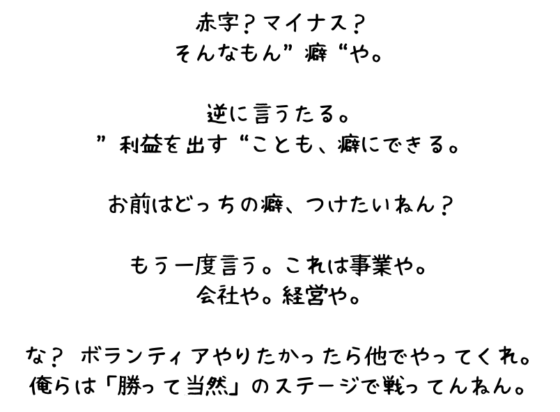 『勝ち癖をつけろ。赤字は癖。利益もまた、癖や。』